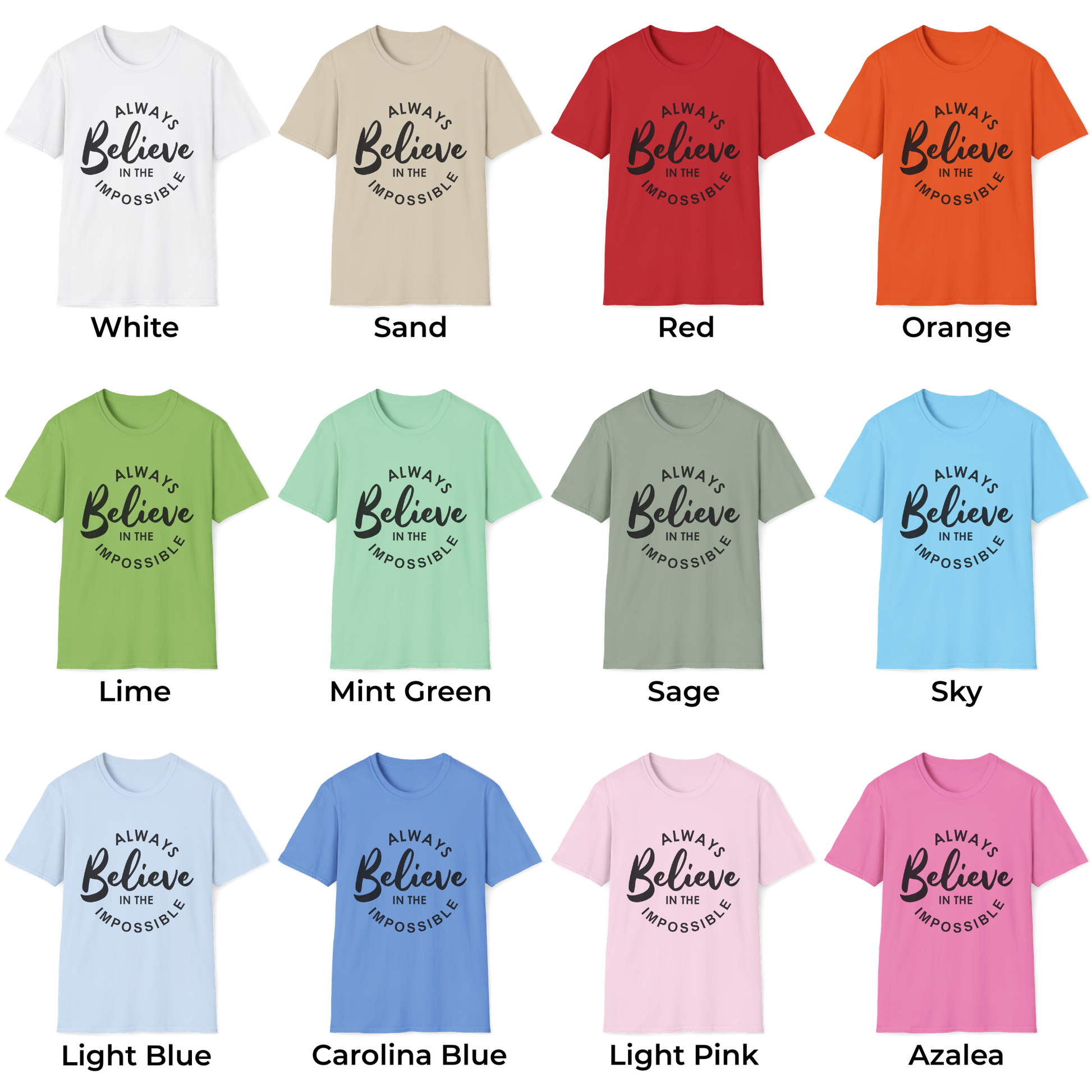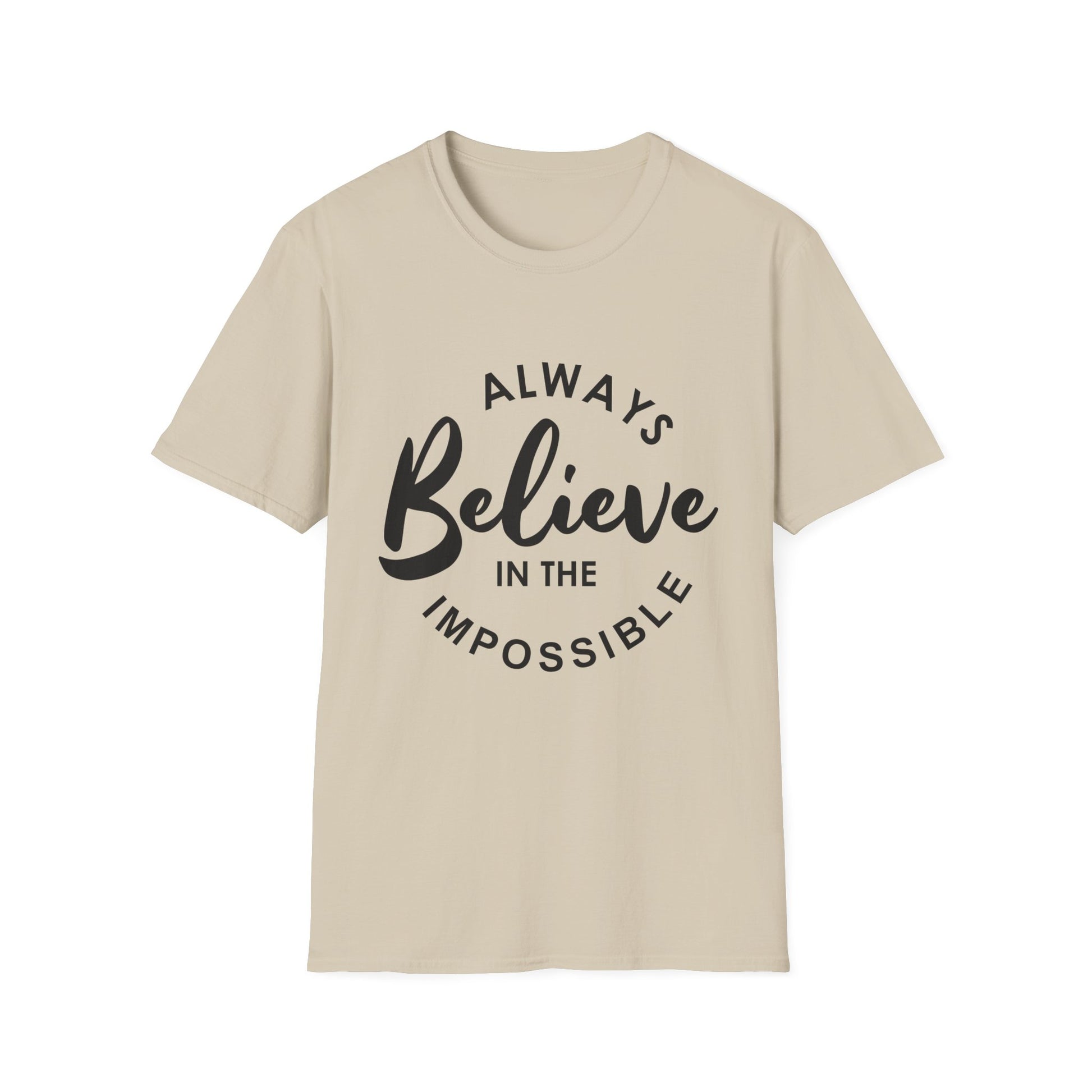 Stay inspired in style with this unisex softstyle t-shirt, featuring the uplifting message “Always Believe in the Impossible.” Lightweight, breathable, and soft, it delivers all-day comfort with a classic fit. Perfect for casual wear, milestone celebrations, or as a motivational gift for students, professionals, and dreamers alike.