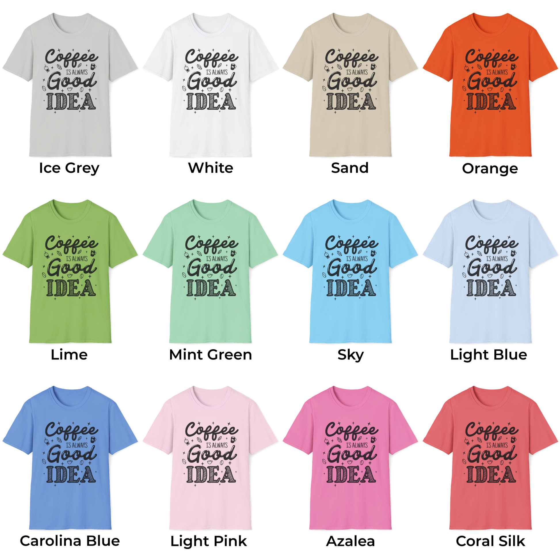 Fuel your passion with this perfect "Coffee Is Always Good Idea" tee that celebrates your love for the ultimate daily companion. Made from soft ring-spun cotton, this comfortable shirt feels amazing during cozy coffee dates and casual outings with fellow caffeine enthusiasts. Perfect for International Coffee Day, birthdays, or anyone who believes coffee makes everything better in life. The fun design makes it a thoughtful gift for coffee lovers or friends who appreciate their daily brew ritual.