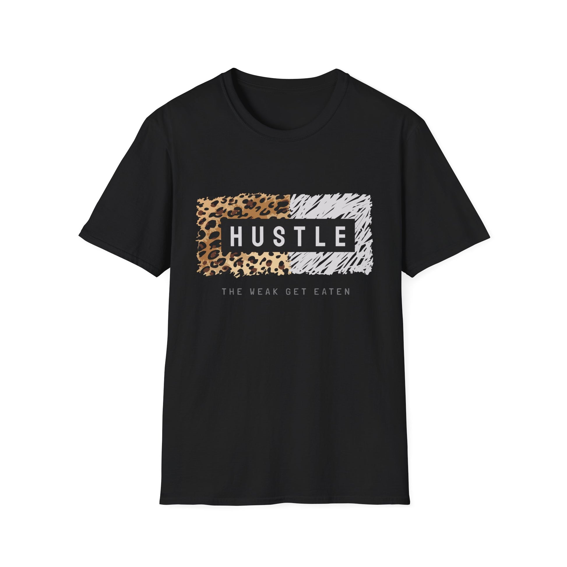 Fuel your ambition with this fierce "Hustle - The Weak Get Eaten" tee that motivates relentless pursuit of success daily. Made from soft ring-spun cotton, this comfortable shirt feels amazing during gym sessions and ambitious workdays ahead. Perfect for entrepreneurs, go-getters, or anyone who thrives on motivation through bold fashion statements that inspire action. The striking leopard print design makes it a powerful gift for birthdays, celebrations, or friends who appreciate inspirational apparel that embodies determination and hustle.
