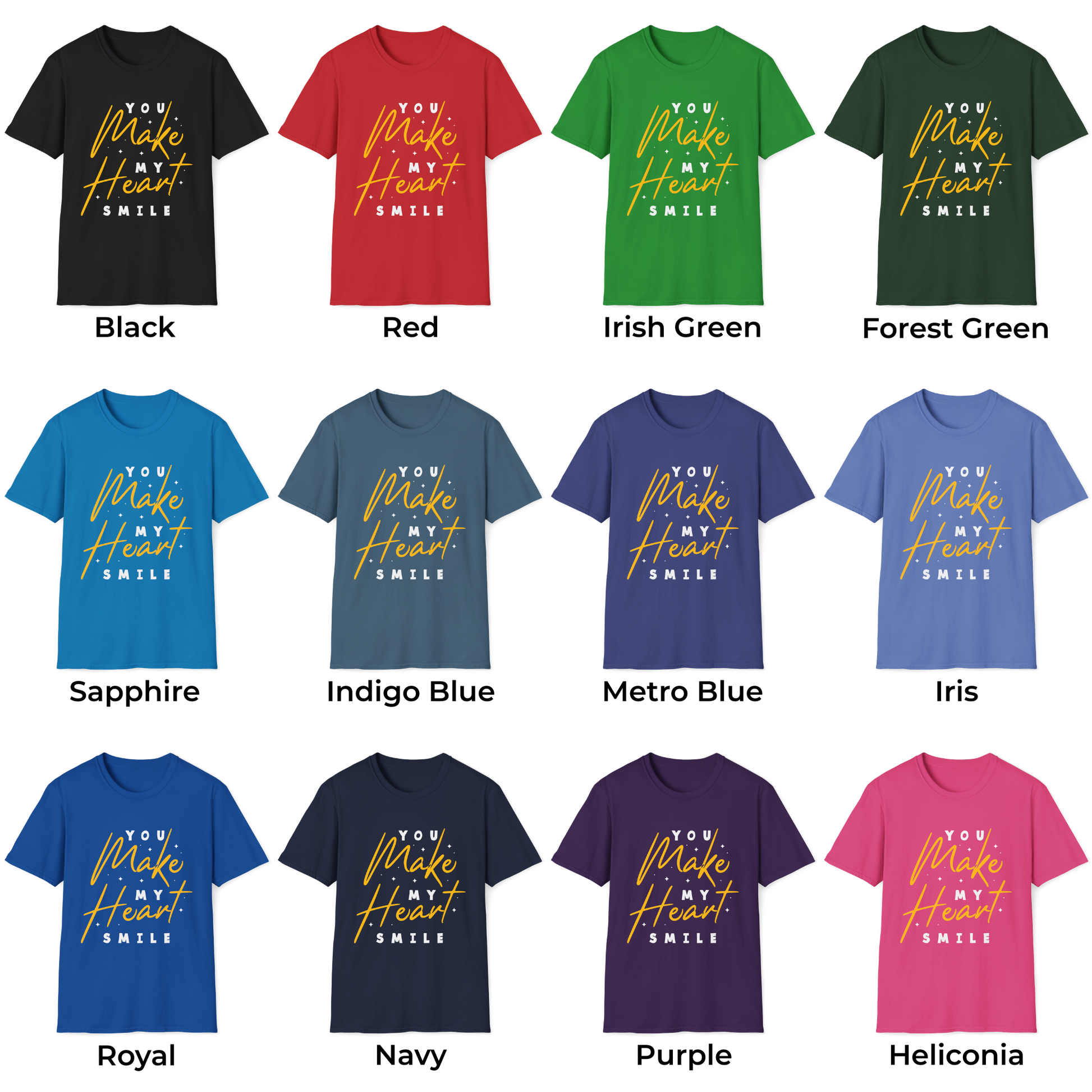 Express love and joy with this heartwarming "You Make My Heart Smile" tee that radiates warmth and connection everywhere. Made from soft ring-spun cotton, this comfortable shirt feels amazing during romantic dates and casual outings with loved ones. Perfect for Valentine's Day, anniversaries, or anyone who loves sharing heartfelt sentiments through meaningful fashion choices. The touching design makes it a wonderful gift for partners, friends, or family members who bring happiness to your life.